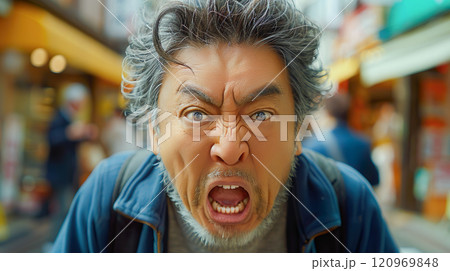 AI-generated content. Sulking senior Latin American man, head and shoulders portrait on white background. Neural network generated photorealistic image