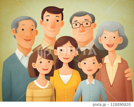 Multigenerational family portrait illustration