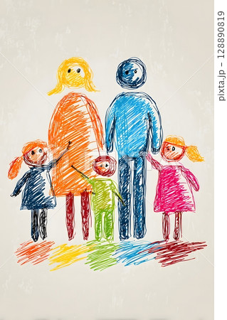 Family diversity concept with hand drawn line art