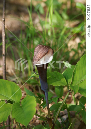 Arisaema serratum,一種在森林中開花的天南星科植物