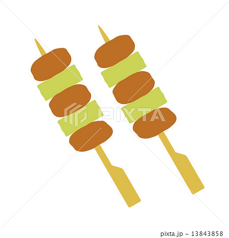 兩個烤雞肉串在方形板/白色背景上的插圖