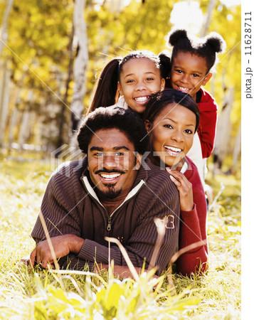 African family laying in grass