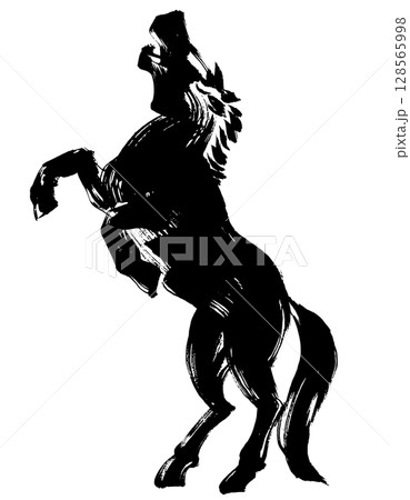 馬年,新年的材料,墨水和筆觸_嘶鳴的馬的剪影,向量插圖