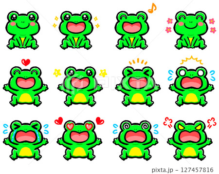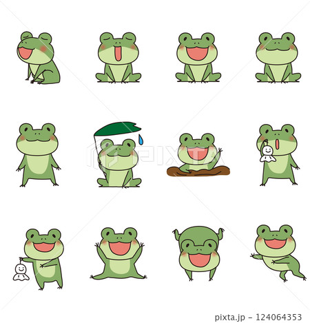 Cartoon Frog Head in kids drawing style, flat design simple shapes, isolated on white background