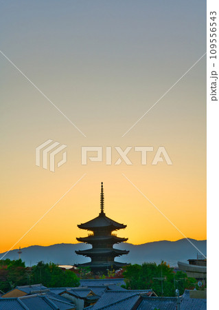 [京都府] 黃昏染紅的東山象徵的八坂塔