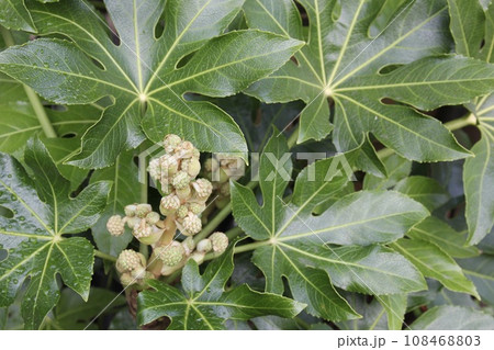 八角金盤(Fatsia japonica)的花朵,八角金盤是五加科的常綠灌木,原產於日本。