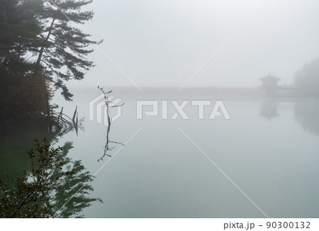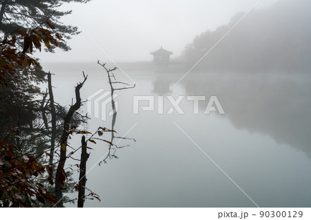 貞邑內藏山國立公園湖中倒映的烏華亭和秋葉