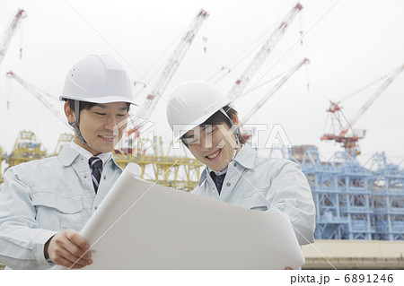 男總工程師講解施工進度、網路進度、施工監造、頭盔2人