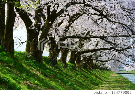 愛知縣一宮市木曾川沿岸的櫻花樹