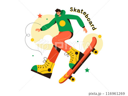 Skateboard Vector Illustration with Skateboarders Jumping on a Springboard in a Skatepark in Extreme Sports on Flat Style Cartoon Background