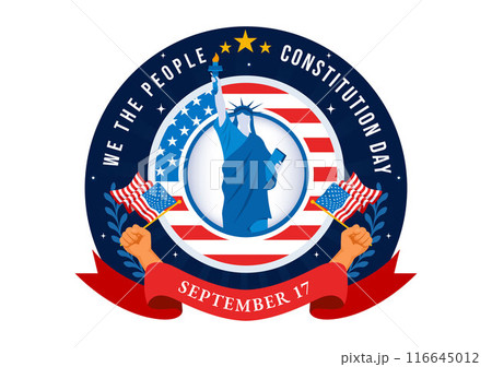 Happy Constitution Day United States Vector Illustration Vector Illustration on September 17th with an American Waving Flag and the Capitol Building