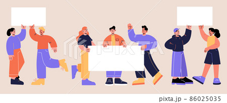 Rally, protest concept, people with placards, riot