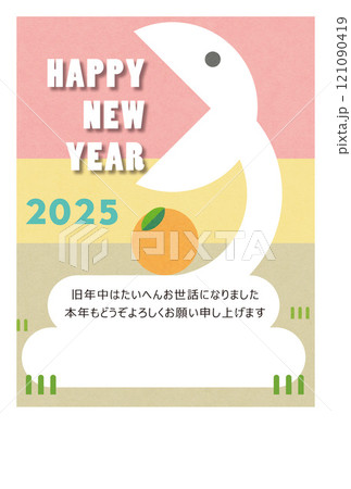 新年賀卡 2025 年明信片模板歡快的蛇 kagami mochi 插圖