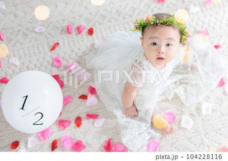 半個生日 6 個月大的嬰兒穿著嬰兒連衣裙