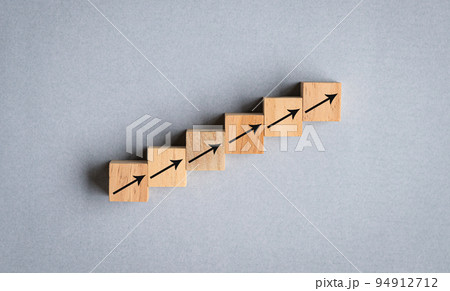 Arrows on wood cubes arranged as step stair going up.