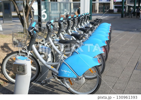 Asian woman standing indoors in casual co?working space, with bicycle and colorful chairs