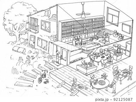 Home office. Interior vector illustration. Work from home. The interior design of the flat promotes a sense of calm and focus Office area provides ample storage for files and documents Home office is