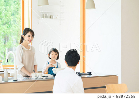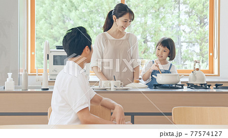 家庭主婦/妻子在廚房做飯,丈夫在家工作(家庭主婦)