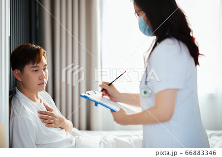 Woman Doctor holding Coronavirus COVID-19 Infected Blood Sample and syringe