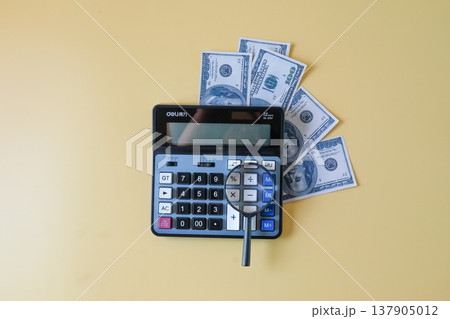 Calculator with magnifying glass,business theme.