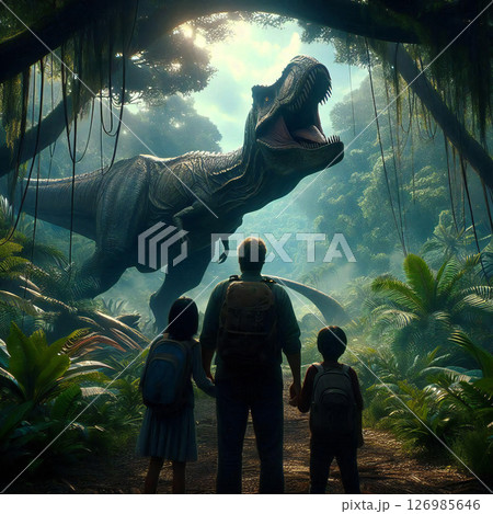 Father and son reading a fantasy book with a dragon emerging from the pages