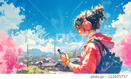 暑假玩望遠鏡的孩子(小屋、別墅、山間小屋、露營、豪華露營)