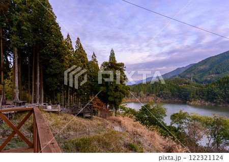 眺望綠川水壩湖的探險設施風景「森林探險美里」(上今敷郡美里町)