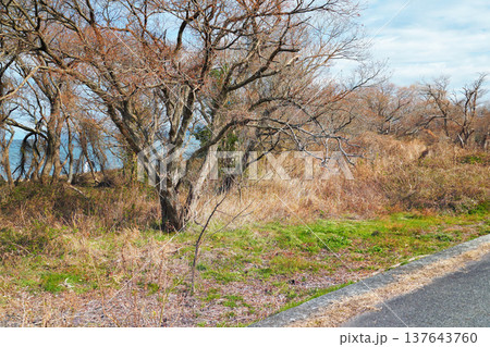 田裡的三椋樹和冬樹 [築井,相模原市,3月]