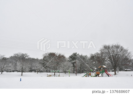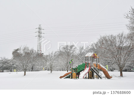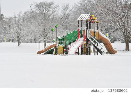 白雪皚皚的森林公園裡的遊樂場設施_11