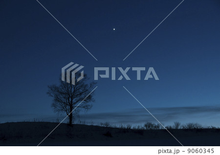 冬天的美瑛町黃昏山丘上的鬆鬆森林