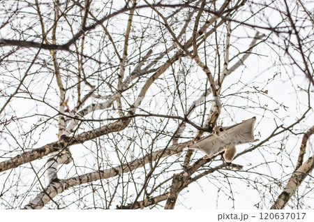 蝦夷鼯鼠在北海道冬日的天空中飛翔