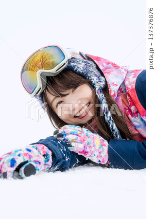 一位年輕女子躺在雪地上