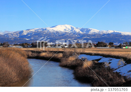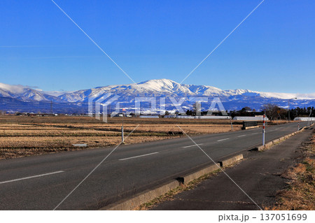 如月市的莊內平原和白雪皚皚的山峰