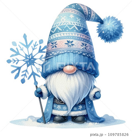 Blue Winter Gnome Wonderland Watercolor Illustration. Cute Whimsical Sublimation Clipart.