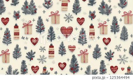 Christmas fall floral seamless border flat set. New year print pattern frame sticker stencil infinite holiday decorative ribbon scotch tape leaf berry branch evergreen plant winter vintage ornament