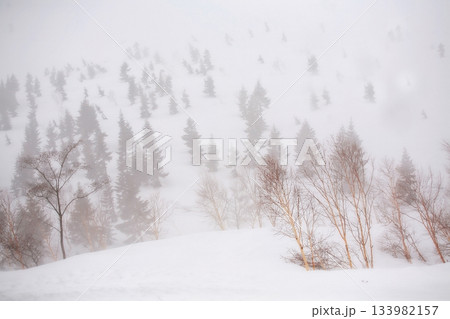 Snow covered mountain with Christmas Tree, Tateyama Kurobe Alpine