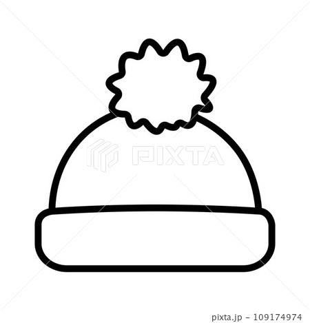 Bobble Hat with pompom. Knitted Winter Head Fashion accessory cap clothing technical illustration. Vector headgear