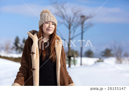 白雪皚皚的風景和時尚的中間女性