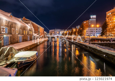 北海道小樽市黃昏的小樽運河