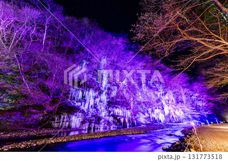 埼玉縣秩父市三十槌町的冰柱被照亮