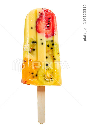 Fruit Ice Cream isolated on transparent background, summer food concept, generative ai