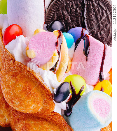 Big colorful set different types natural dessert ice cream of consisting various ingredients