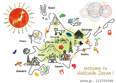 可愛的插畫地圖和北海道旅遊景點的護身符