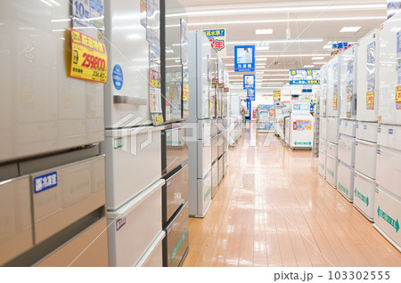 一位女商人(冰箱)在家電零售店、住宅展廳、樣板間、電器店向一對老年夫婦解釋