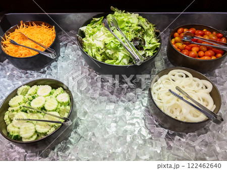 Fresh Salad Bar with Assorted Vegetables on Ice.