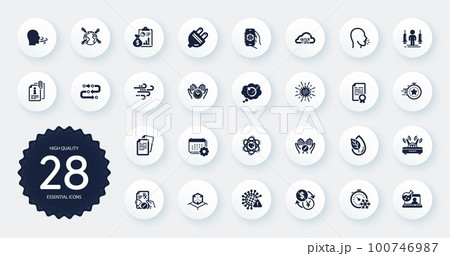 Report, Euler diagram and English line icons for web app. Glare of light effect. Message icon. Pack of Global business, Waterproof, Safe time pictogram icons. Vector