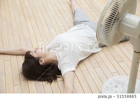 一幅插圖描繪了一位老婦人(祖母)在陽台上灑水降溫的情景。