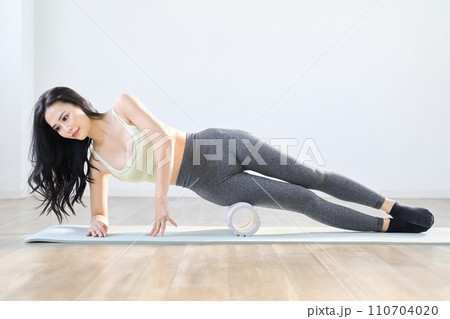 一位女士使用泡沫軸放鬆大腿