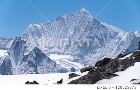 Beautiful view of Mt.Gangchempo (6,387 m) seen from Tsergo Ri (4,990m) the high point on the Langtang valley trek of Nepal. lies in Langtang region and has been perceived as best destination of Nepal.