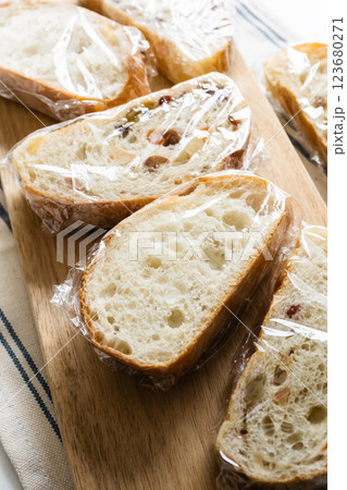 如何儲存麵包:用保鮮膜包覆法國麵包
